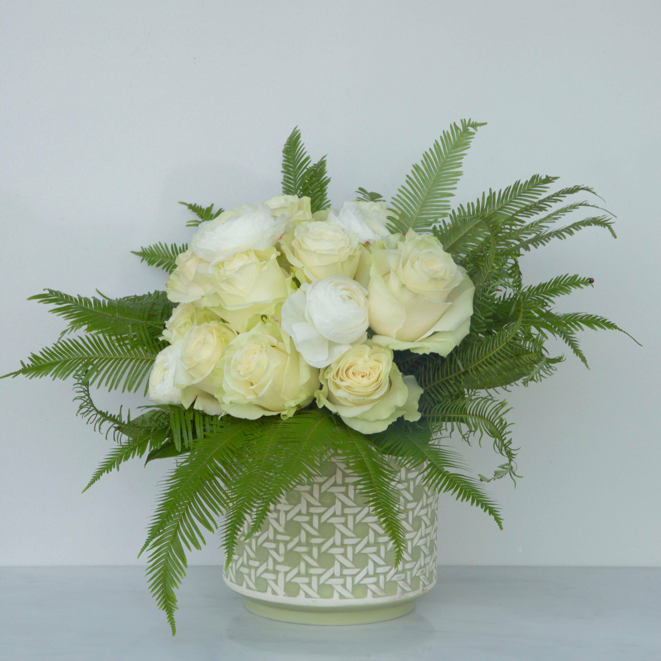 - This arrangement represents the inspiration based on the palette you selected. The actual arrangement that we design for your order will be just as beautiful, but not necessarily replicated. The arrangement we create will be composed of the most beautiful florals available at the time of purchase. ***LARGER VERSIONS AND MORE CUSTOM WORK AVAILABLE PLEASE CALL TO INQUIRE (718) 979-6561***
