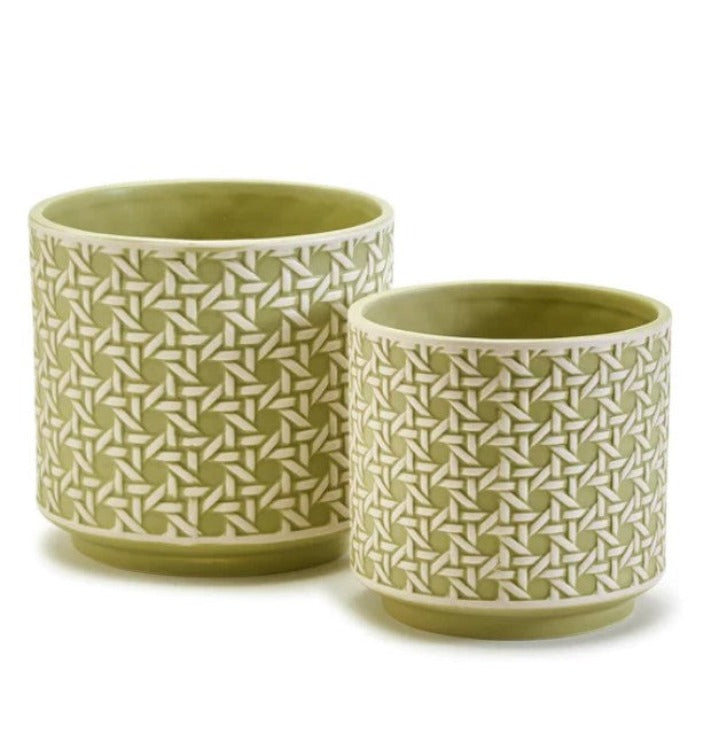 Two’s Company Green Embossed Cane pots (2)